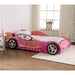Twin Bed Height: 23.50" Width: 45.50" Length: 82.50" Set your child on the road to a dreamland of extravagance in this fashionable and luxurious Pretty Racer bed. The sturdy construction boasts a flashy finish and working lights - a dynamic pink-themed delight your child is sure to enjoy.