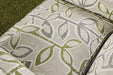 The optional round ottoman and matching chairs share the same visual cues to fully round out this perfect addition to your home.