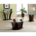 MANHATTAN IV Dark Cherry Sofa Table, Brown Cherry, 50"L X 18"W X 31"H, 70.49lbs. These matching living room tables add contemporary style to any living area. Each has a glass top with a sturdy unique wood base finished in dark cherry. Features: Contemporary Style Solid Wood, Wood Veneer, Others Beveled 10mm Glass Top Open Shelf in Sofa Table Dark Cherry Finish