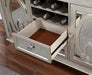 CATHALINA Server, Silver, 54"W X 18"D X 36"H, 169.4lbs. Differentiate your dining room with the beautiful mirror tile accents and brilliant tones of this transitional style server. It comes with plenty of storage for wine and dining utensils.